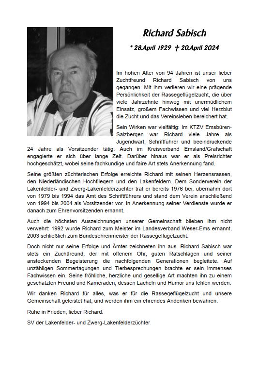 Der Sonderverein der Züchter der Lakenfelder- und Zwerglakenfelder präsentiert auf seiner Homepage unsere schöne Rasse, die in der Liste der gefährdeten Haustierrassen gelistet ist.